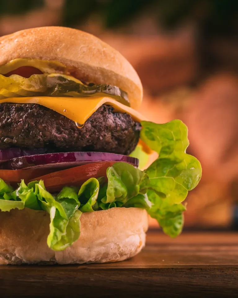 handmade beef patty char grilled, American cheese, lettuce, fresh tomato, tomato sauce and